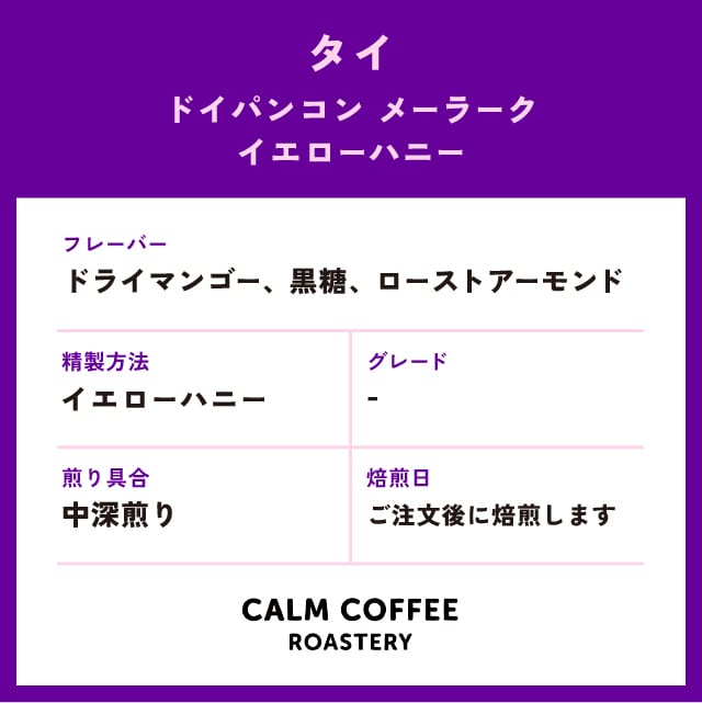 【コーヒー豆】タイ / ドイパンコン メーラーク イエローハニー 中深煎り 90g or 180g